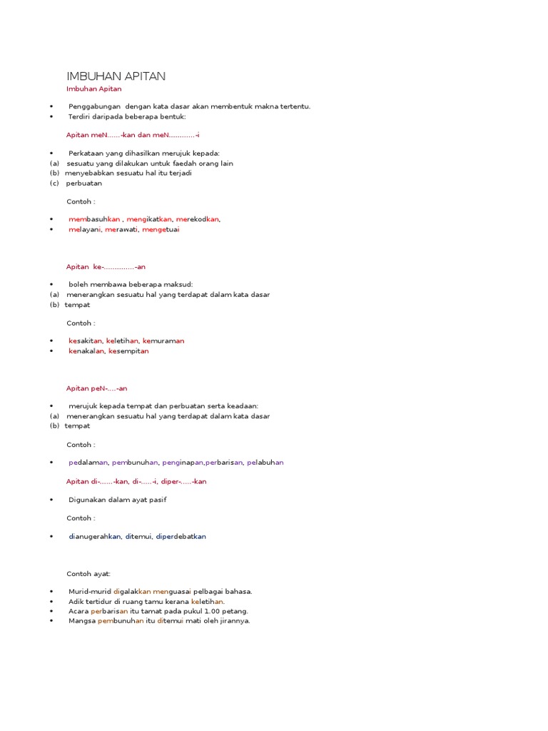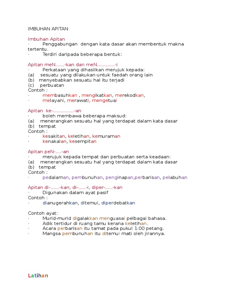 Imbuhan Apitan Dan Contoh Ayat Imbuhan Apitan